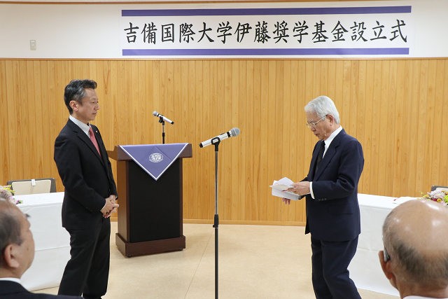 岡山県高梁市出身で、元京セラ代表取締役社長伊藤謙介氏の寄付によって「伊藤奨学基金」が設立されました。留学を志す外国語学部生にとって、給付型奨学金が大きな助けとなっています。
