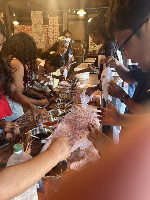 Home キビコクNEWS キャンパスライフ 第2回留学生研修旅行を実施しました NEWS キビコクNEWS 第2回留学生研修旅行を実施しました 2025年9月16日 キャンパスライフ 留学生の地域学習の一環として、高梁市成羽町の吹屋ふるさと村へ、染物工芸体験と街並み見学に行ってきました。 染物工芸は、ベンガラ泥染めに挑戦しました。留学生それぞれの感性が生み出す染物は、非常に個性豊かな作品が出来上がりました。 また、吹屋ふるさと村の赤茶色の石州瓦と、ベンガラ格子に赤い壁の街並みを見ながら、散策を楽しみました。 一覧へ