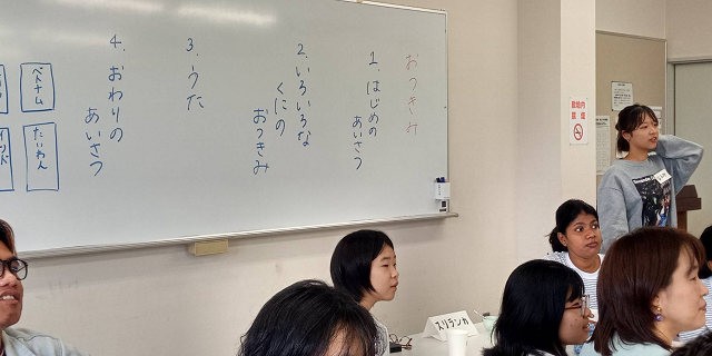 本学岡山キャンパスが所在する地域にある、岡輝公民館では、居住する外国人(留学生を含む)と地域住民の交流を円滑なものとするため、外国人居住者にも分かる「やさしい日本語」という講座を実施されてます。その講座の受講生のみなさんから講座で学んだことを実践したいとの要望があり、外国学科有志が留学生と共に協力させていただくことになりました。