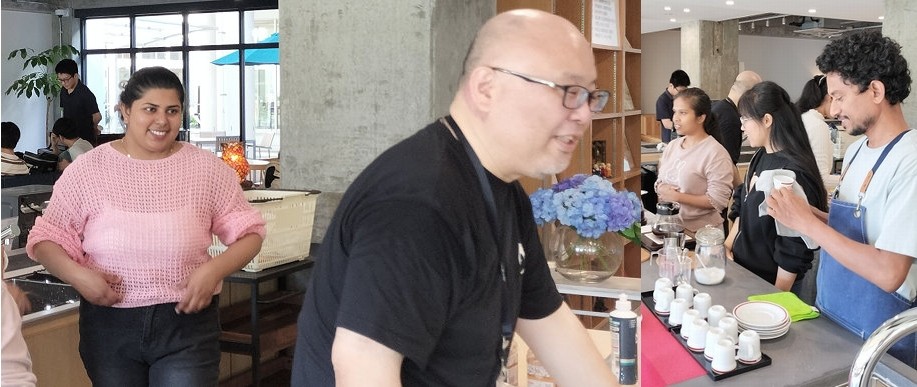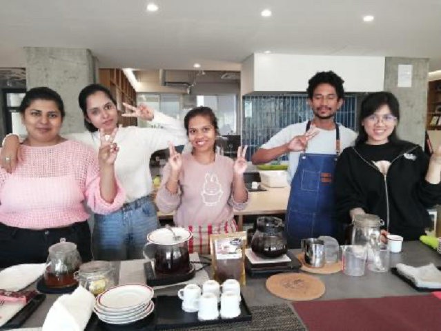 今回のフリーコーヒーに参画してくれたメンバーは、大西ゼミでは、G.WEERASINGHE ALOKA CHATHURANGANEE(アロカ)さん、MADDUMAGE DON SURESH MADURANGA(スレーシ)さん、R.V.P.D.MADHUMADHAWA NISHADANI(二シャーダニ)さん、SAHIET GNI SHEHANI SHANIKA(シャーニカ)さん、NGUYEN THANH TUYEN(トゥエン)さん、心理学部心理学科から小井隆之介さん、鮎川千穂さん、吉田晴世さんの3名が参画してくれました。
