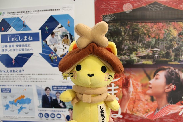 このたびの「しまねっこ」訪問が実現したのは、本学キャリアサポートセンターの要望に、「Link.しまね 岡山拠点」(岡山市北区)の、島根県商工労働部雇用政策課学生就職アドバイザーの皆様が応じてくださった結果によるものです。「Link.しまね 岡山拠点」は、「令和7年度山陽地域等に進学した大学生等の島根県内就職支援事業」(島根県より株式会社パソナが受託し、運営しています)を行っており、本学学生の島根県内への就職にご支援・ご協力をいただいております。