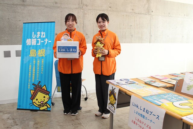 この日は、「しまねっこ」が伊賀祭会場内の様々なブースや模擬店を訪問し、会場を盛り上げてくれました。また「Link.しまね 岡山拠点」の皆様による「島根県ブース」が設けられ、島根県クイズや島根銘菓のつかみ取り、また島根県の情報、そして島根県内への就職希望者への就職支援の取り組みなどが紹介されました。