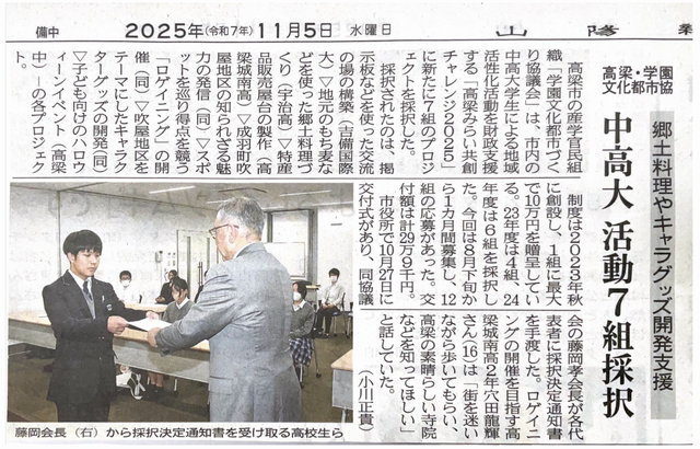 (山陽新聞2025年11月5日新聞掲載されました。)