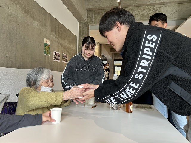 これを記念し、高齢者の方々を大学に招き「梅ソーダの振る舞い会」を開催しました。