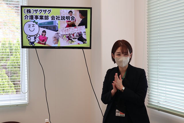 この日は、現在20施設を運営しえいる「ザグザグリハビリテーションスタジオ」(略称:ザグスタ)に関する説明が行われました。ザグスタは、リハビリ特化型の介護・トレーニング施設でシニア向けフィットネスジムで、理学療法士や作業療法士の資格を持つ方を求めているとのことでした。