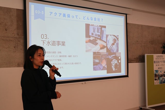 11月17日(月)、高梁キャンパス学生会館KIUB(キューブ)3階のラーニングコモンズを会場に、株式会社アクア美保様による企業説明会・業界研究会を開催しました。