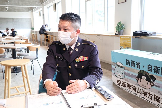 11月18日(火)、高梁キャンパス学生会館「KIUB(キューブ)」2階を会場に、自衛隊(防衛省)によるキャリアガイダンスを開催しました。