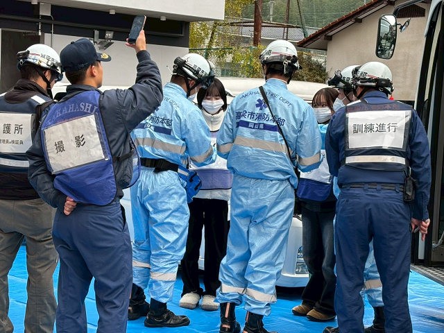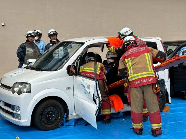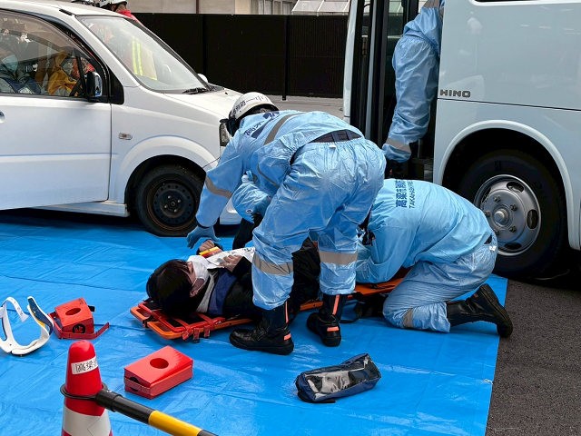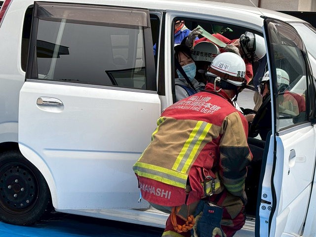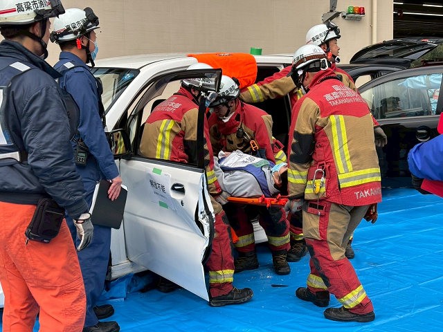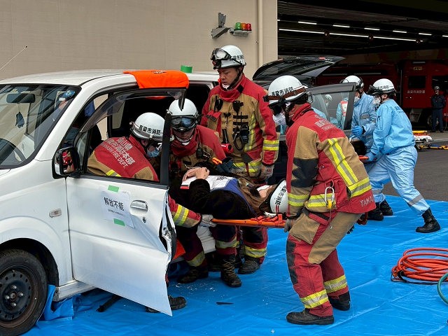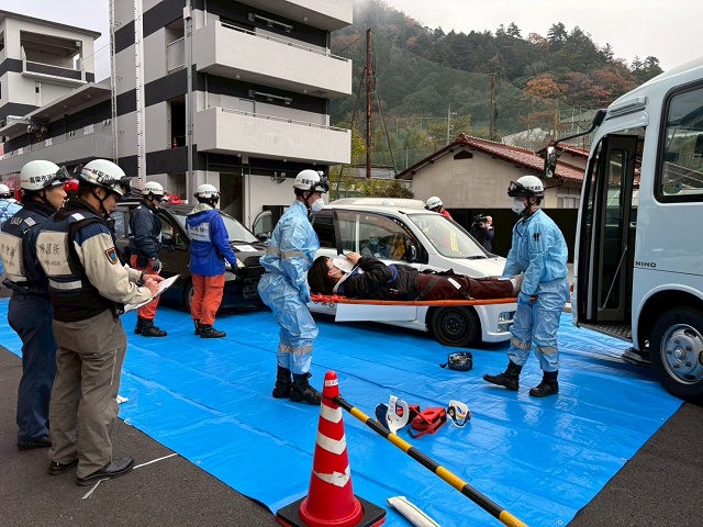 その後、事故車両からの救出、トリアージタグを使った重症度の判定、ストレッチャーでの搬送、救急隊による応急処置まで、現場さながらの緊張感の中で一連の訓練が進められました。