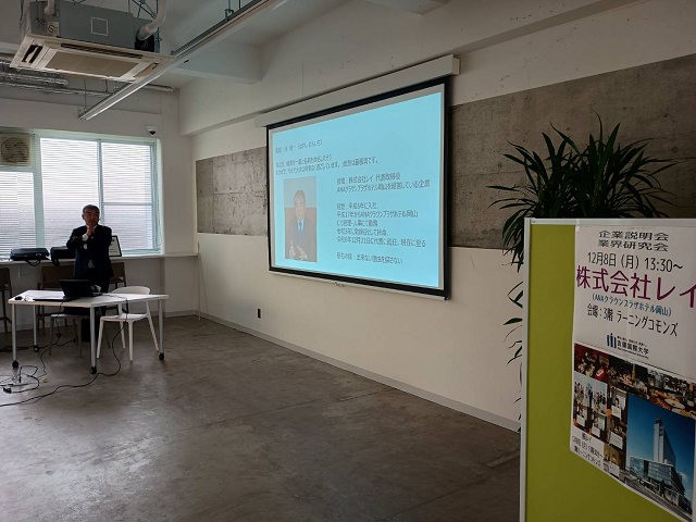 12月8日(月)、高梁キャンパス学生会館「KIUB(キューブ)」3階ラーニングコモンズを会場に、株式会社レイ(ANAクラウンプラザホテル岡山)様による企業説明会・業界研究会を開催しました。