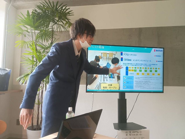 12月11日(木)、高梁キャンパス学生会館「KIUB(キューブ)」2階を会場に、東中国スズキ自動車株式会社様による企業説明会・業界研究会を開催しました。