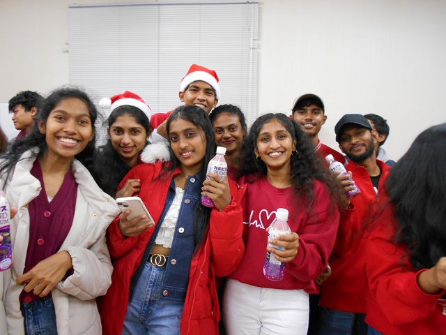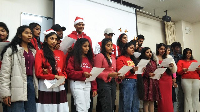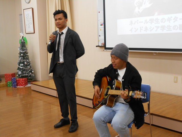 スリランカは全員で歌を、ミャンマーは可愛い民謡ダンスを、ネパールはネパールのクリスマスのダンスを披露してくれました。ソロで藤井風の「死ぬのがいいわ」を日本語で歌いあげてくれた学生も。インドネシアとネパールのコラボレーションで、クリスマスソングの演奏もありました。