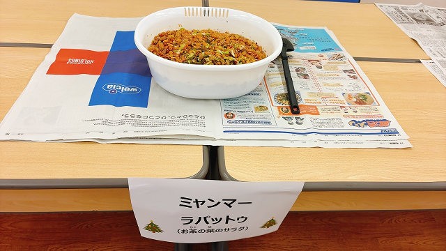 スリランカはココナッツのフィリングをクレープのような生地で包んだパンケーキ、ネパールはみんなが大好きな餃子”モモ”、今回初めて参加するミャンマーは香ばしいナッツとお茶の葉を和えた”ラペットゥ”というサラダを作ってきてくれました。