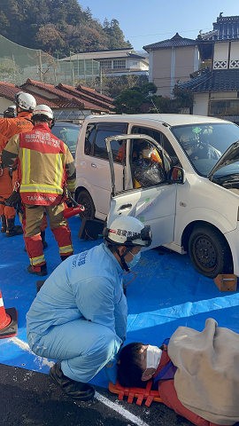 令和7年12月7日、高梁市消防署が実施した交通事故を想定した、「多数負傷者対応訓練(第2回)」に、吉備国際大学の学生有志が参加しました。