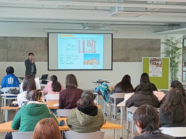 この日は、学生らは、同社採用担当者から、詳細な事業内容や同社の強み、魅力といったことなど説明を受けました。