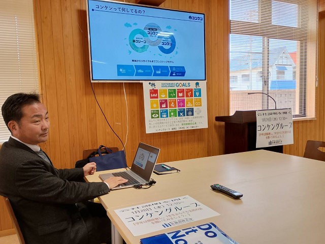 この日、同社採用担当者による、コンケングループそして同社の事業内容、さらには同社代表取締役社長のインタビュー動画そして若手社員から就活生に向けたメッセージ動画も流されました。