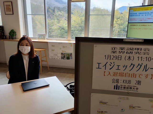 1月29日(木)、高梁キャンパス学生会館「KIUB」2階を会場に、株式会社エイジェック様による企業説明会・業界研究会を開催しました。