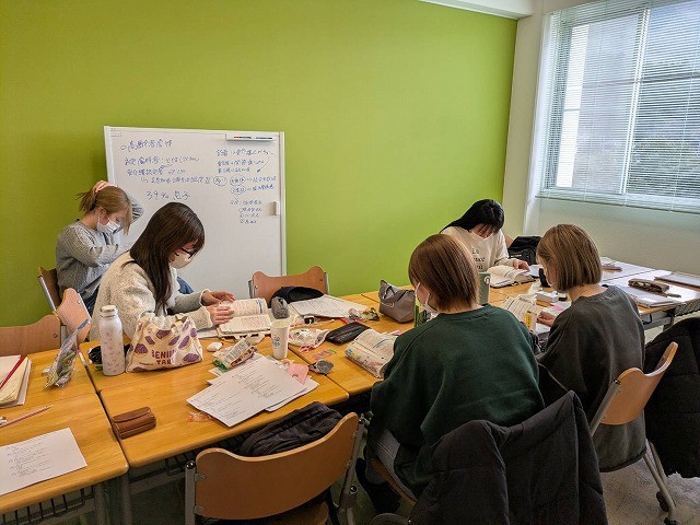 看護師、保健師国家試験を目前に控え、学内では4年生たちがそれぞれのスタイルに合わせた環境で、最後の追い込み学習に取り組んでいます。