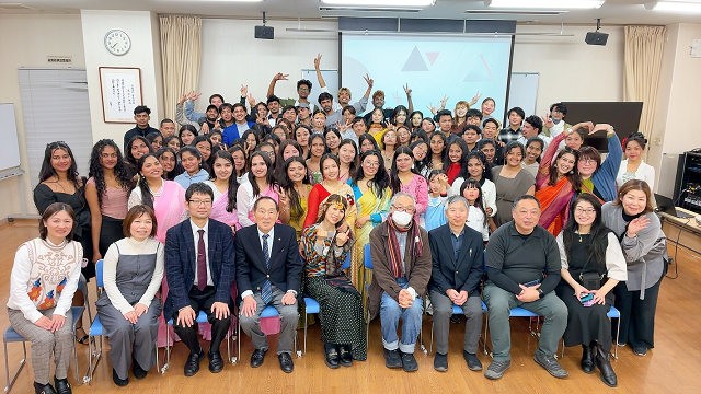3月6日(金)、岡山駅前キャンパス(岡山市北区)にて、留学生別科「2025年度春入学生」の送別会として「別科さよならパーティー」が開催されました。1年間の教育課程を終え、慣れ親しんだ学び舎を巣立つ留学生たちの門出を祝うため、後輩の秋入学生や教職員、関係者など約100人が集まりました。
