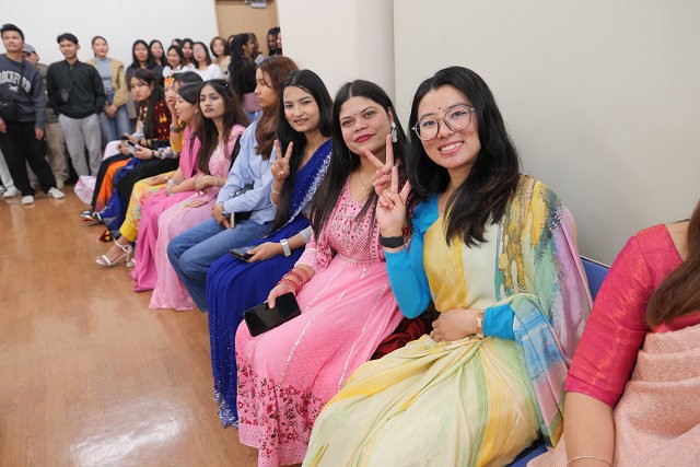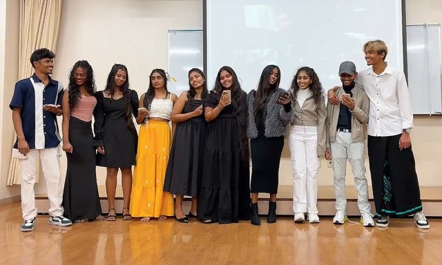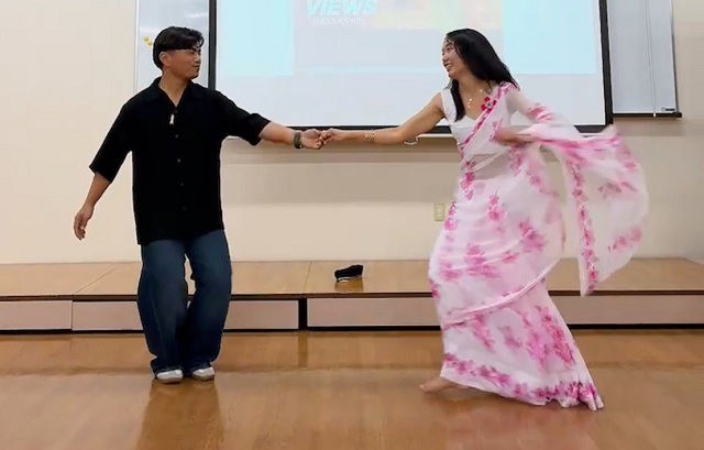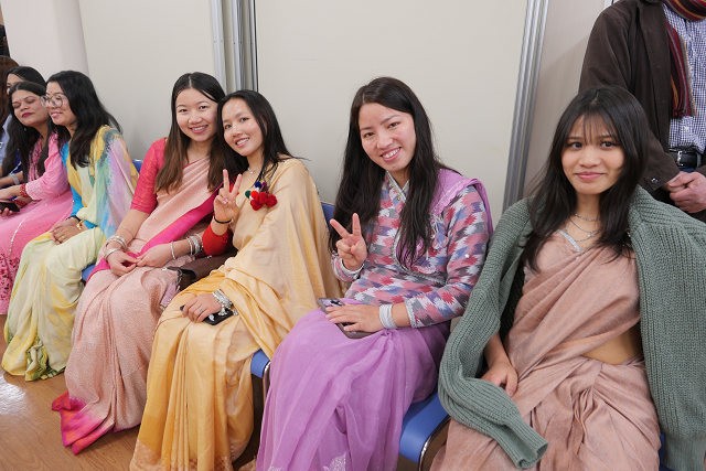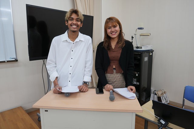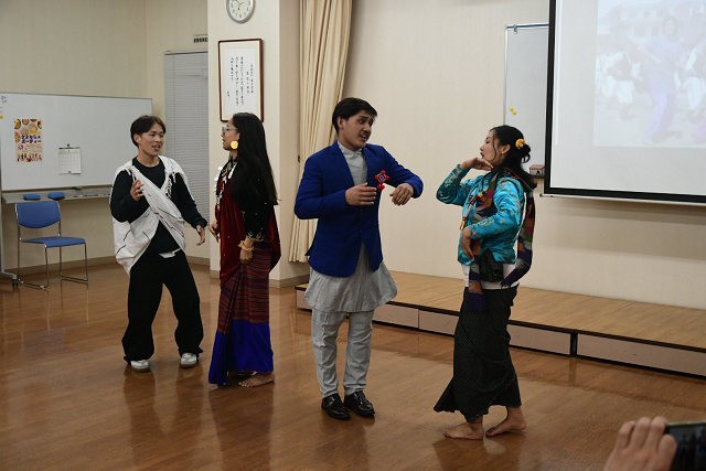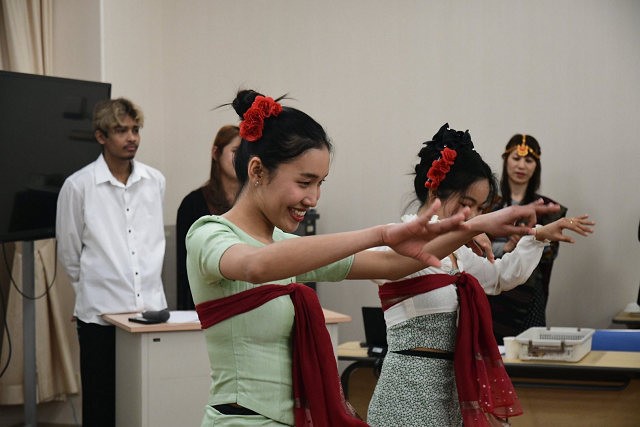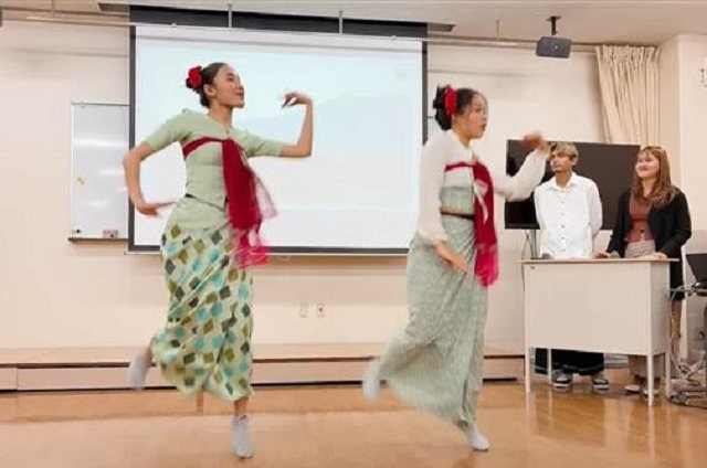 料理を楽しんだ後は、この1年間の歩みを振り返るスライドショーを上映。思い出に浸った後、留学生らによる華やかなパフォーマンスが披露されました。ギター演奏に合わせた歌や民族衣装を身にまとった伝統ダンス、後輩から先輩へ贈る合唱などが続き、会場の盛り上がりは最高潮に達しました。さらに、在学中に顕著な活躍を見せた学生への表彰式も行われ、教員から賞状と記念品が手渡されると、会場は温かい拍手に包まれました。