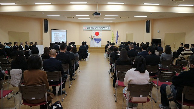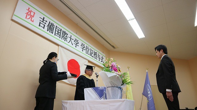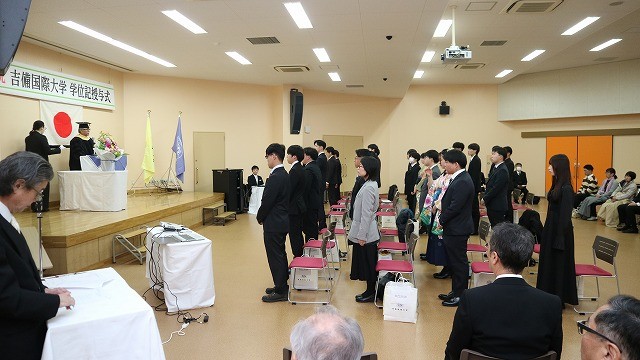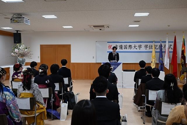 式の中で、中瀨学長は「大学は卒業して終わりではありません。これからも困難に向き合った時、キャンパスでの経験を思い出して、卒業を勝ち取った努力に自信を持って、そして勇気を持って、新たな人生に出発してください。」と卒業生らを激励しました。また、加計理事長は「私たちに与えられた人生は一度きりです。高い志と大きな夢を胸に、ひるむことなく挑戦を続けてください。困難に立ち向かい、逆境を乗り越えた時の喜びは比較にならないほど人間の器を大きくします。そして苦難を避けることなくたゆまぬ努力を重ねることによって人生は必ず開けます。」と告辞を述べました。