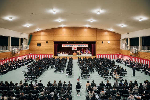 式の中で中瀨学長は、新入生らに向けて「豊かな自然美、歴史や文化と多様な地域コミュニティに包まれるそれぞれのキャンパスで、それを取り巻く地域の方々と共に学ぶ自らの持つ力を引き延ばして不確実な時代を生き抜く素地を身に付けてください」と激励しました。