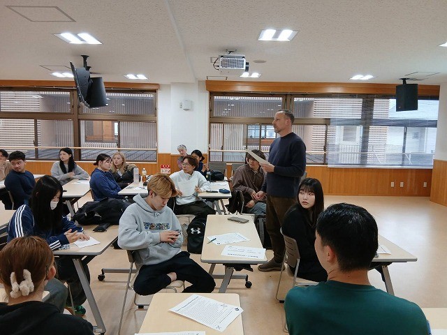 4月15日(水)外国学科のある岡山キャンパスで、新入生並びに交換留学生の歓迎イベントWelcome Eventを行いました。イベントを通じて、まず、岡山キャンパス内に何があるのかを知ること、次に、交換留学生を含む留学生と日本人学生、そして、学年を超えた学生相互の交流を促進することが目的でした。このイベントには、1年生を中心に約30名の学生が参加しました。交換留学生は6名全員が参加しました。英語ネイティブ教員(フォーセット先生、イアン先生、ポール先生)が企画し、運営していただきました。外国学科らしく、このイベントはすべて英語で運営されました。