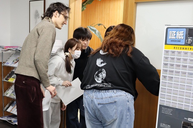 キャンパス内を縦横無尽に走り回り、指定の場所を探し回りました。Where is a microwave? (電子レンジはどこ?)などと叫びながら、学生たちは指定場所から指定場所に走り回っていました。「失礼します!」と保健室になだれ込んだグループもいて、カウンセラーの先生が驚いていました。各グループはまわる順番が指定されており、特定の場所で渋滞することがないように配慮されていました。オランダからの交換留学生2名が「自分たちの出番だ」と、はりきってくれました。参加者は汗だくになりながら、紙を片手に走りまわっている姿は壮観です。キャンパスは、歓声と笑いであふれた。出発地点の大講義室に戻ってからが、違う意味で大変でした。「あれ、ぴったり合わない、、、」「文章にならないけど、、、」などとがループで相談しながら、17文字をUnscramble(並び替え、解読)していきました。優勝は、オランダ人交換留学生が入ったグループでした。同学生によれば、走りながら、decoding (暗号解読)をしていたそうです。さすが、ITデザイン専攻!そして、第2位は、じゃんけんで決着しましたが、もう一人のオランダ人交換留学生(ITシステム開発専攻)のいるグループでした。