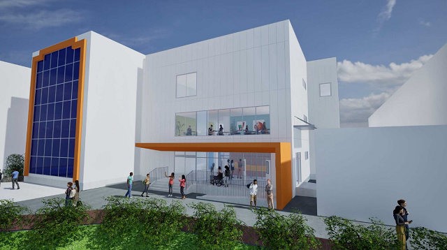 新校舎は鉄骨造3階建て、1階は図書館・シャワールーム・展示コーナー、2階は演習室、3階は約300名を収容可能な大講義室を備え、令和9年2月に完成予定です。