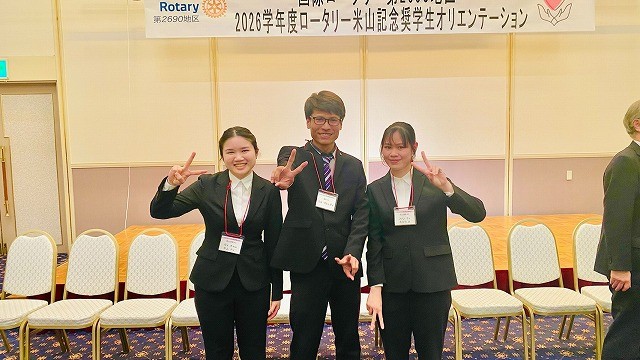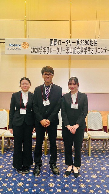 4月26日(日)ロータリー米山記念奨学会のオリエンテーションが鳥取県米子市で開催され、外国学科4年生の3名が出席しました。インドネシア人留学生1名は、前年度からの奨学金継続受給者で、備前ロータリークラブにホストしていただいています。本年度新規受給者2名は、ベトナムからの留学生です。ひとりは岡山西南ロータリークラブ、もう1名は御南ロータリークラブにホストしていただくことが発表されました。これからは、ホスト・ロータリークラブの月例会に出席し、スピーチをしたり、地域のイベントへの積極的な参加が期待されています。