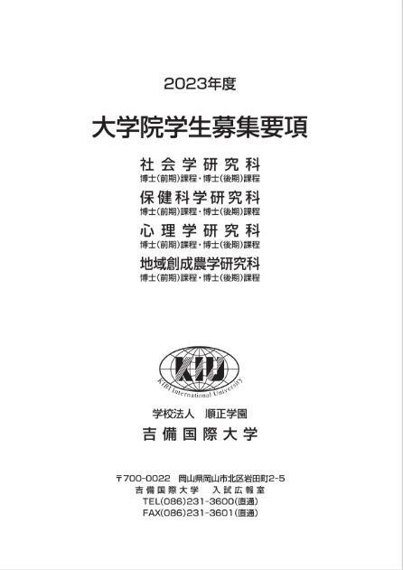 吉備国際大学2026年度大学院学生募集要項を、インターネットでご覧いただくことができます。