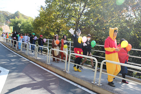 オープニングイベント後、様々な仮装をした学生たちによる市中パレードがキャンパスを出発しました。模擬店がオープンし、ステージイベントがスタートすると、会場は大勢の人たちでにぎわいました。