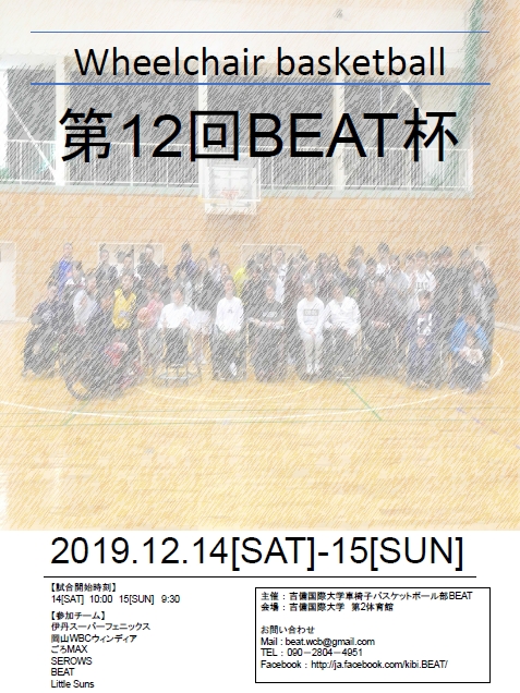 車椅子バスケットボール大会「BEAT杯」開催のお知らせ