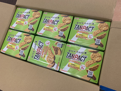 7月12日 明治ホールディングス(株)(全国フードバンク推進協議会経由)様より、ビスケット、ヨーグルトゼリー 88.9kg