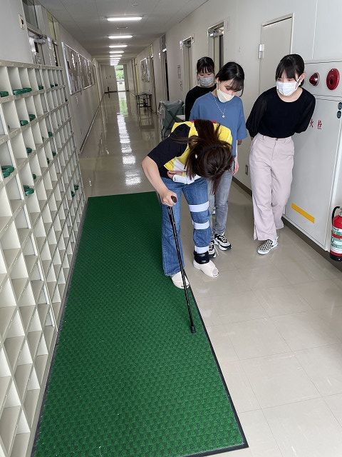 Home キビコクNEWS 学部・学科 看護学部 看護学科 【看護学科】3年生が老年看護学の授業で高齢者疑似体験 NEWS キビコクNEWS 【看護学科】3年生が老年看護学の授業で高齢者疑似体験 2022年7月8日 看護学科 看護学科3年生の学生が、老年看護学の授業のなかで高齢者疑似体験を行いました。 80歳代の体を疑似体験できるスーツを着用して、階段の昇り降り、買い物体験、車椅子移動など、様々な体験をしました。 体験の後、高齢者疑似体験での気づきや学びをグループワークで深め、発表しました。 自分自身が高齢者の体験をすることで、多くの気づきがありました。 保健医療福祉学部 看護学科 一覧へ
