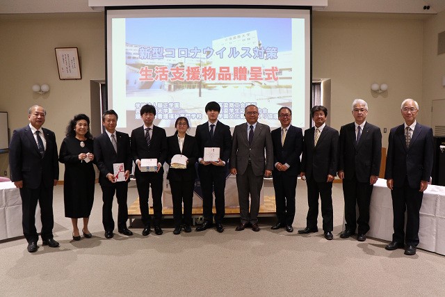 学生に「新型コロナウイルス対策生活支援物品」が贈呈されました