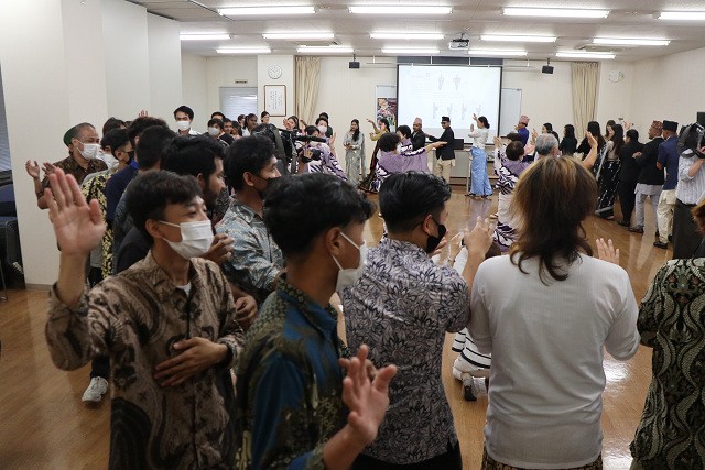 岡山駅前キャンパスにある吉備国際大学留学生別科にて、8月7日「高梁市婦人協議会」の方をお招きし、留学生らおよそ70名が、地域の方々との異文化交流を通して地元の伝統文化を体験することを目的に、「備中たかはし松山踊り」を体験しました。