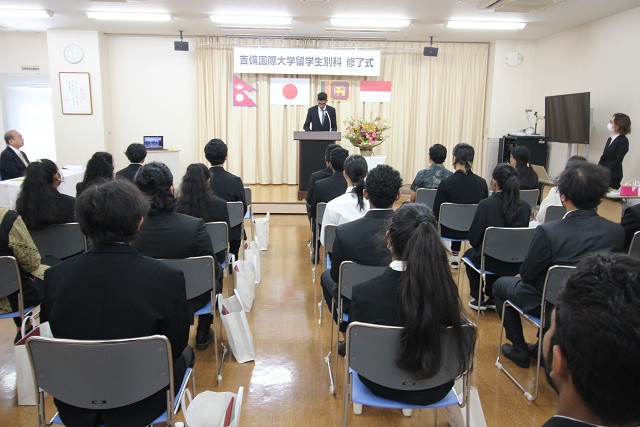 9月19日(木)、留学生別科(岡山駅前キャンパス:岡山市北区)にて、2023年秋に入学した留学生の修了式を行い、32名が慣れ親しんだ学び舎を巣立っていきました。