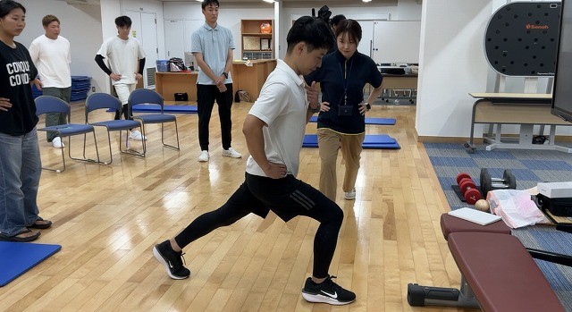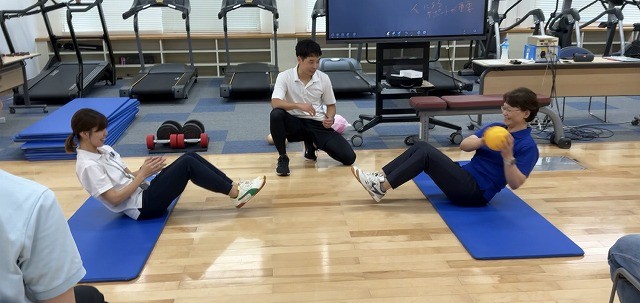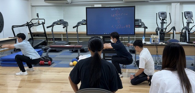 講座は、単なる知識の習得にとどまらず、参加者自身が体験を通じて深く学ぶことができ、子どもから高齢者まで、あらゆる世代が楽しく運動を続けられる方法についても学ぶことができる構成でした。なぜ運動が必要なのかという理論から、運動を始める方への声かけや配慮、運動を継続してもらうための具体的な方法について、グループワークを通じて活発に議論しました。その後、守屋先生による専門的な筋力トレーニング指導を実際に体験しました。参加者は皆、和やかな雰囲気の中で楽しみながら体を動かし、運動の楽しさを実感している様子でした。