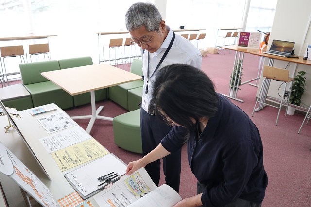 10月20日(月)には、本学の 中瀨克己 学長も展示を訪れました。中瀨学長は、「市の取り組みに大学がどのように関わっているのか、具体的な取り組みがよくわかりました。身近に認知症を感じている方の疑問に答えることができる認知症サポーターの役割はとても大事なことですね。」と感想を述べました。