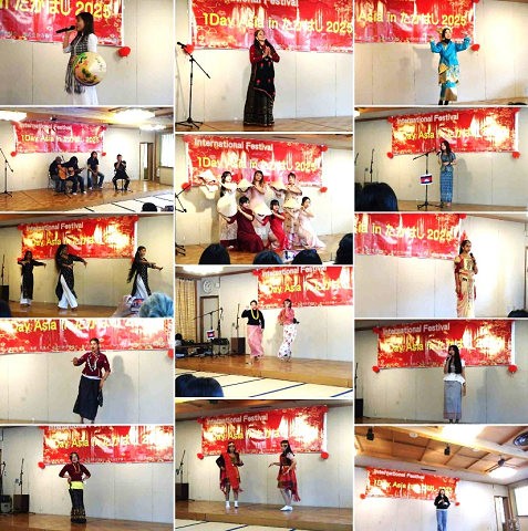 当日は、アジア各国から仕事や留学のために高梁に在住している外国人が、自国の文化を紹介しながら市民の皆さんと交流しました。ステージパフォーマンスでは、ベトナム、インドネシア、スリランカ、ネパール、カンボジアの皆さんが歌や踊りを披露し、会場は大いに盛り上がりました。