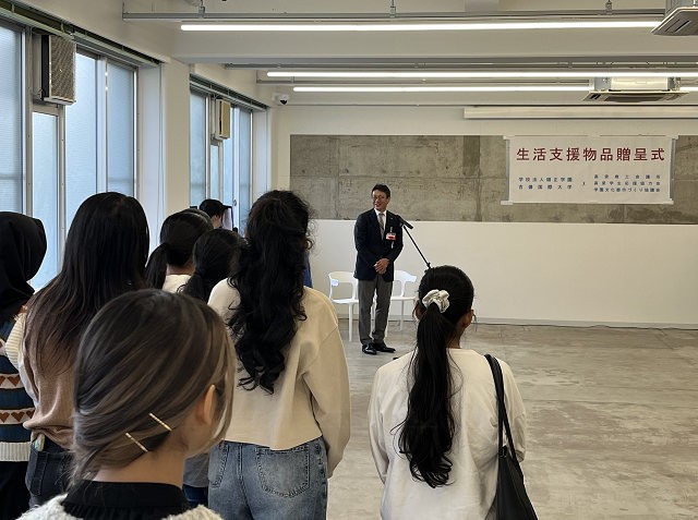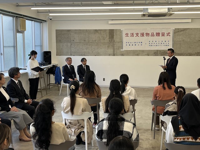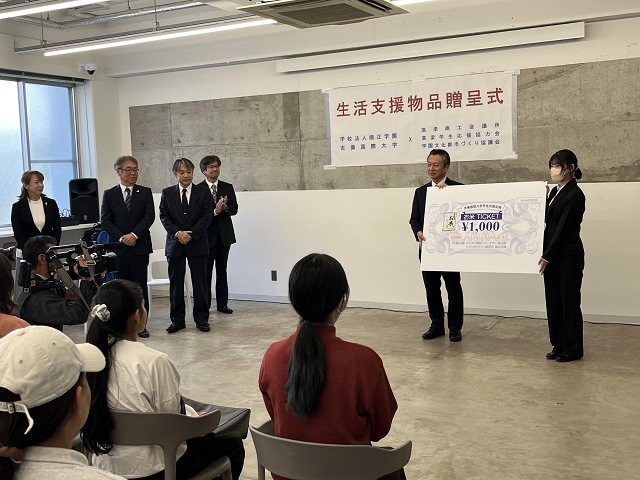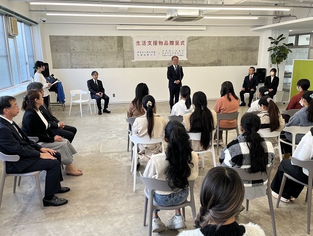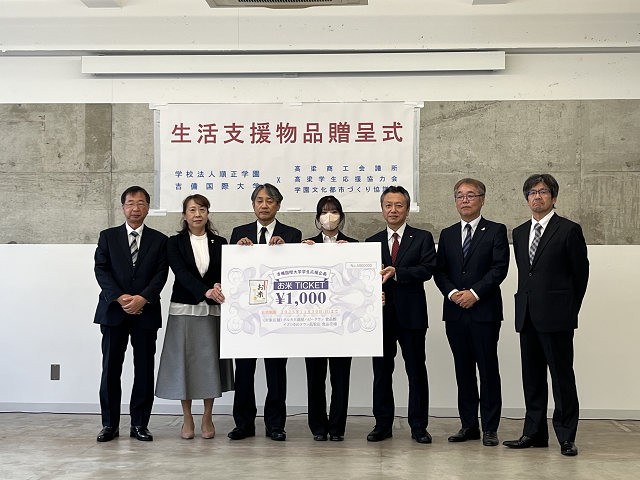 このたび、高梁商工会議所、高梁学生応援協力会、学園文化都市づくり協議会より高梁キャンパスの学部生に対し「生活支援物品」が贈られました。