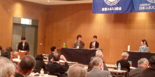 大会プログラムの最後に、パネルディスカッション「ユネスコの視点から若者と考えるまちづくりの未来」が企画され、ユースセッションの3分科会のファシリテーターが、各分科会での討議結果を報告しました。報告について、コメンテータ―5名からのコメント、質疑応答がありました。それに続き、倉敷ユネスコ協会が進めている若者を中心としたプロジェクトの進捗報告がありました。「倉敷美観地区における外部資本店舗のインパクト」、「矢掛のまちづくりの未来」、「備中とと道の観光資源化」について、高校生、大学生のリーダーから口頭発表がありました。コメンテーターからのコメントと質疑応答で、プロジェクトの実施内容の確認、今後の方針などが明確化されました。
