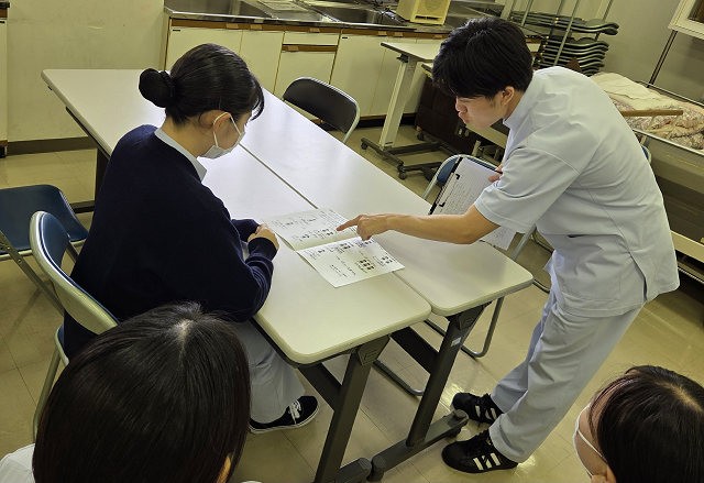 演習後には、「内容が多すぎるかも」「体操の回数は?」「毎日続けられるかな…」といった意見が出て、患者さんの立場に立った指導のあり方について、学生同士で意見を交わしました。