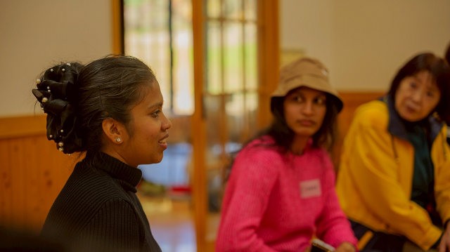 スリランカ出身のイシャーラさん(2年生)は、母国の大学を卒業後、日本で学び直す努力家。英語・日本語の両方で丁寧にサポートし、参加者から安心感のある指導だと声が上がりました。