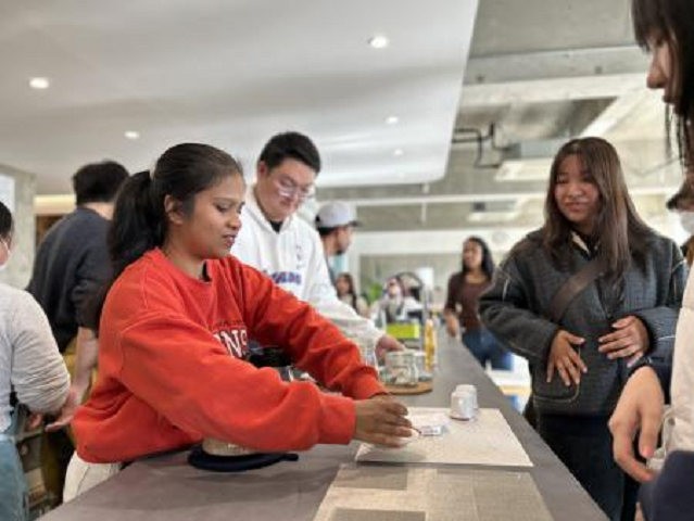 <学生会館KIUB> 日本・中国組によるコーヒー提供に加え、スリランカ組はスパイス香る本格的なスリランカ・チャイを提供しました。