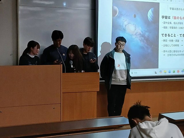 学生たちは、このグループ発表を通じ、学びあいの楽しさ、グループでやり遂げた達成感、発表自体の楽しさを学びました。発表することは教えること、教えることは学ぶこと。学生たちにとって、学びの多い授業になったと思います。