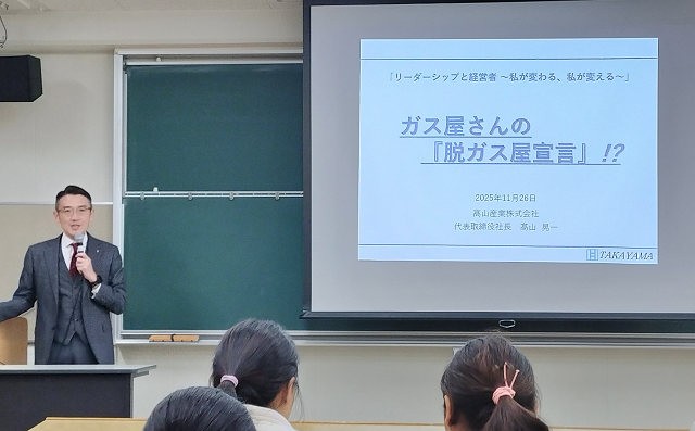 【経営社会学科】【就職・キャリア】高山産業株式会社・高山晃一社長がゲスト講師として登壇 ―“ガス屋さんの脱ガス屋宣言” を通じて語る「変わること」の重要性 ―