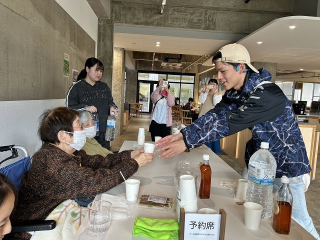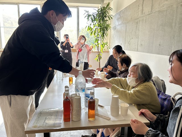 これを記念し、高齢者の方々を大学に招き「梅ソーダの振る舞い会」を開催しました。