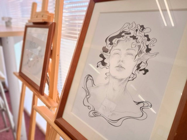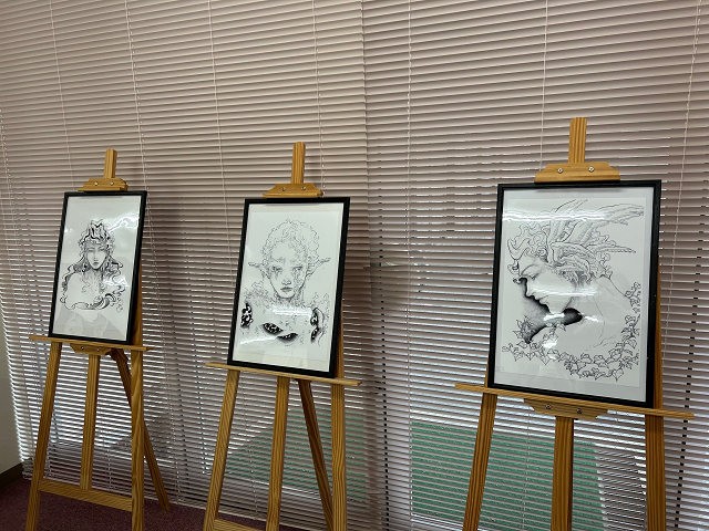 吉備国際大学高梁キャンパス2号館ラーニングコモンズでは、2025年12月9日から22日まで、アニメーション学科主催による第一期作品展として、点描画作品2人展「点・てん・展」を開催しています。(最終日15時まで)