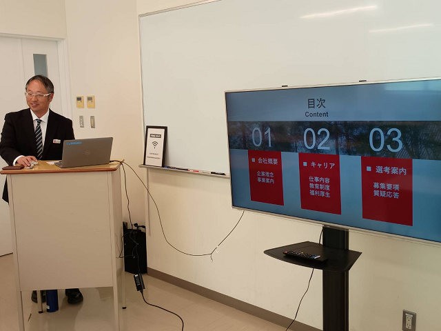 この日は、同社担当者による詳細な企業説明が行われ、参加した学生は理解を深めていました。